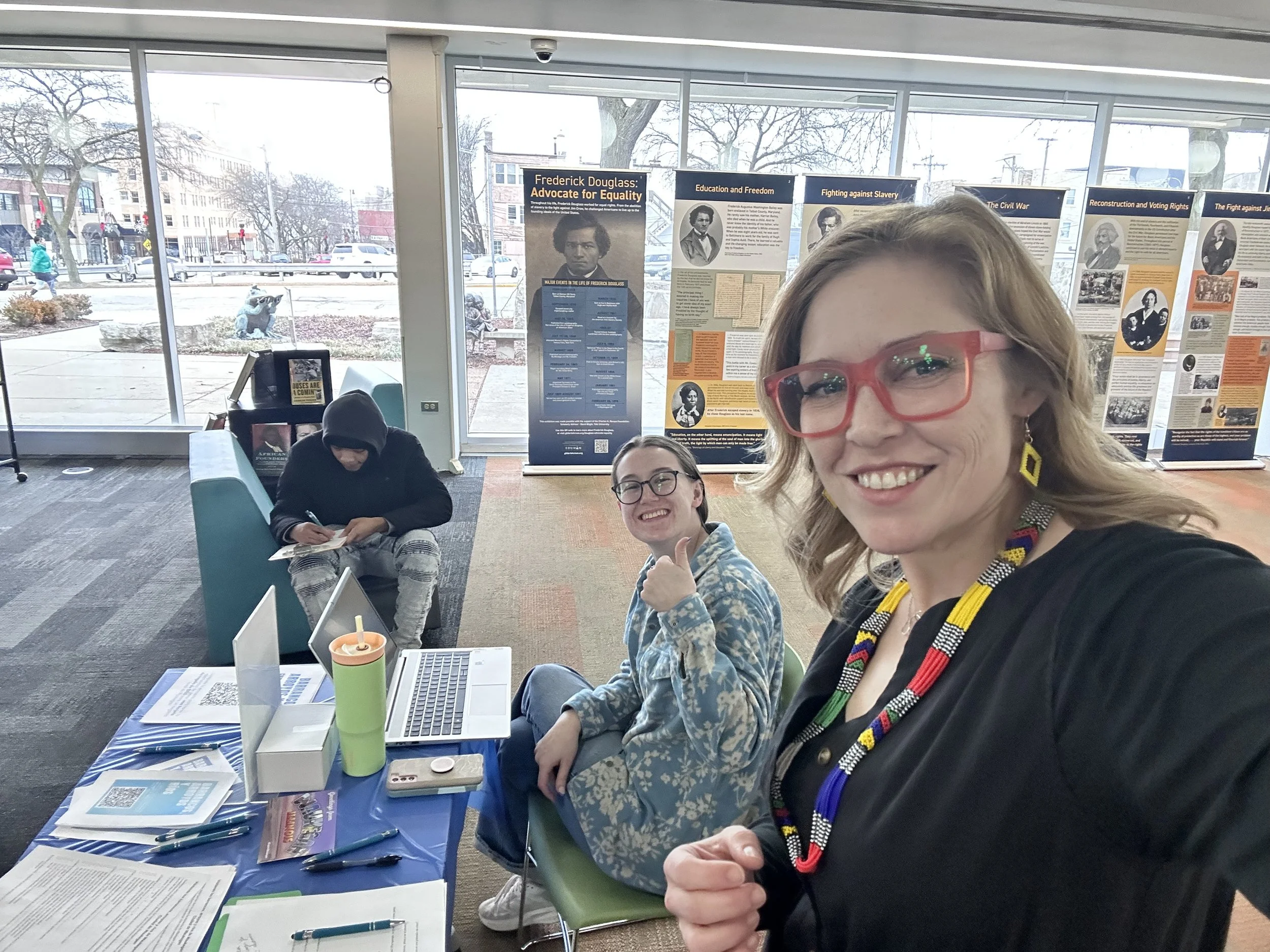 Allie tabling at the Waukegan Public Library with Rachel Cantin, a Waukegan planner and report coauthor